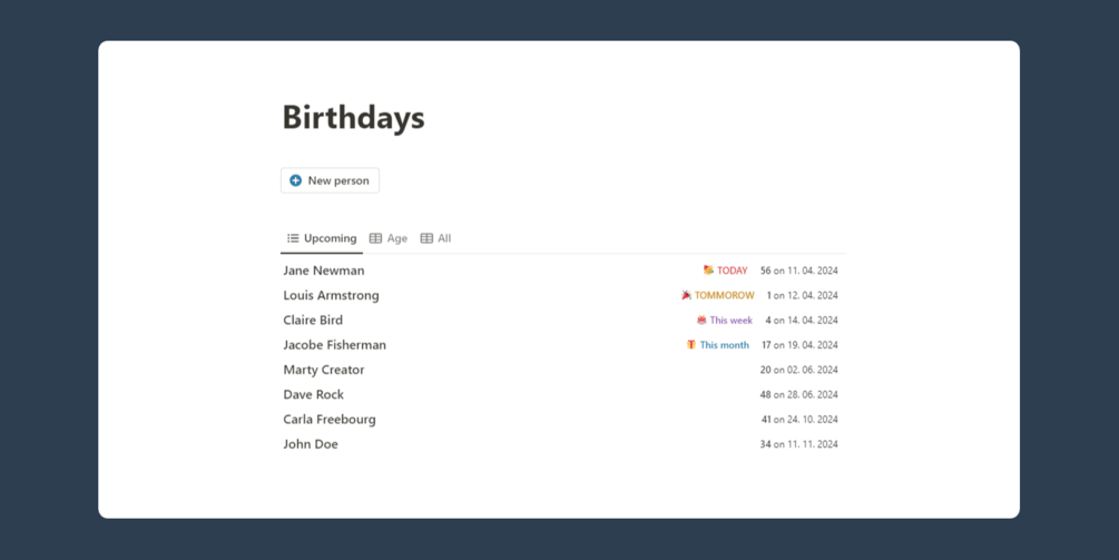 - Birthdays