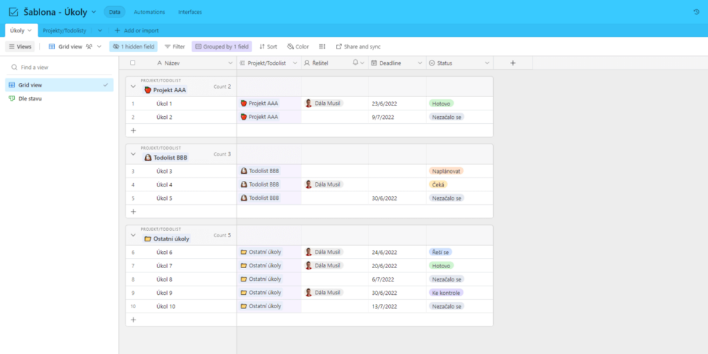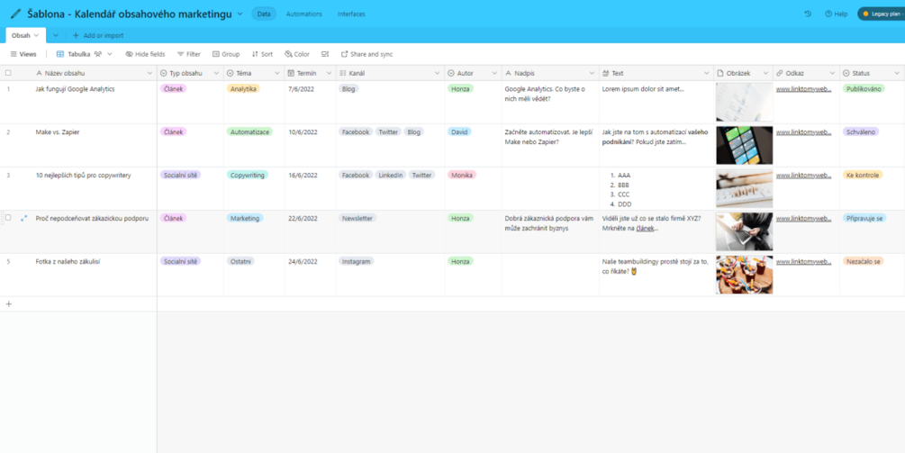 Otevřete odkaz a proklikněte se do šablony, kterou chcete. Vedle názvu šablony klikněte na Copy base. Pak už stačí jen vybrat váš Airtable workspace, do kterého se šablona zduplikuje.