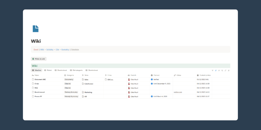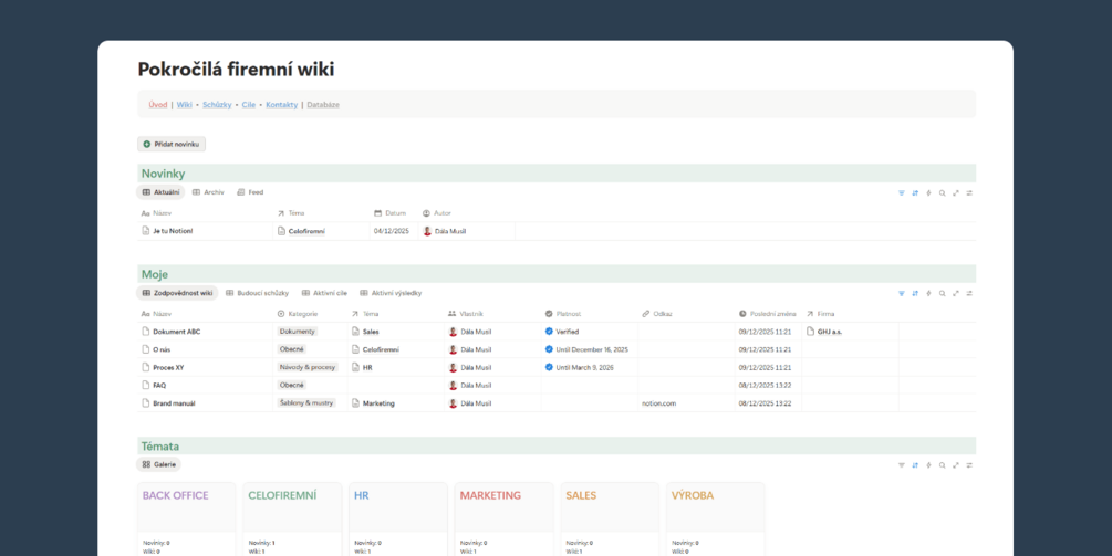 Zjednodušte si podnikání díky šabloně univerzální a komplexní firemní wiki pro Notion.